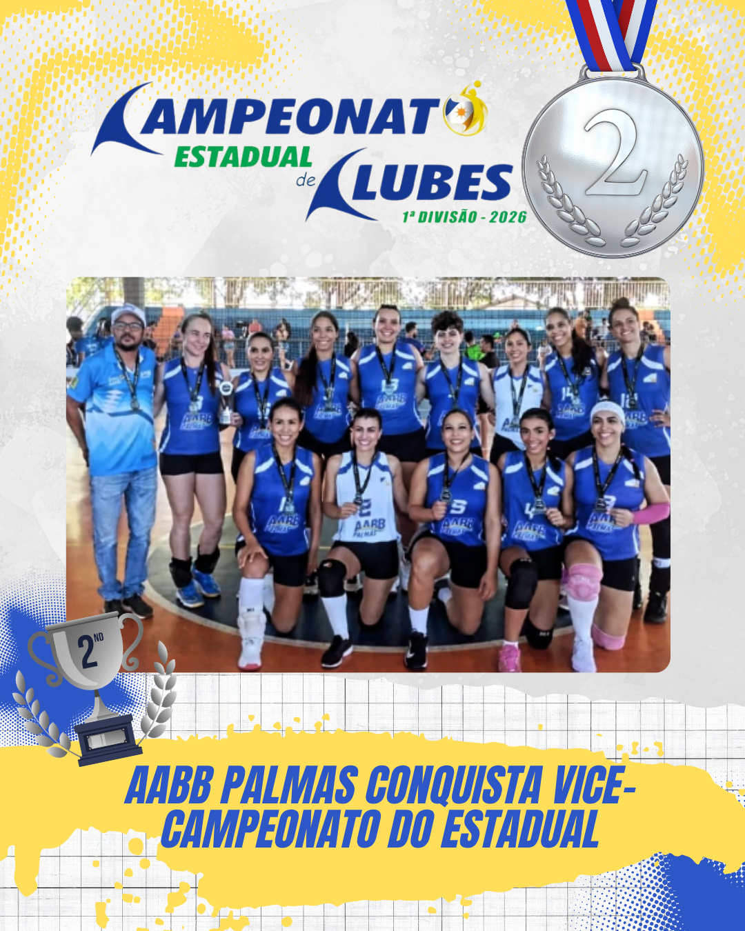 A AABB Palmas teve participação de destaque no Campeonato Estadual de Clubes de Voleibol – 1ª Divisão 2026, realizado neste final de semana, no Ginásio do Colégio Marista, em Palmas. Com uma campanha consistente e jogos de alto nível, a equipe feminina brilhou em quadra e garantiu o vice-campeonato estadual.